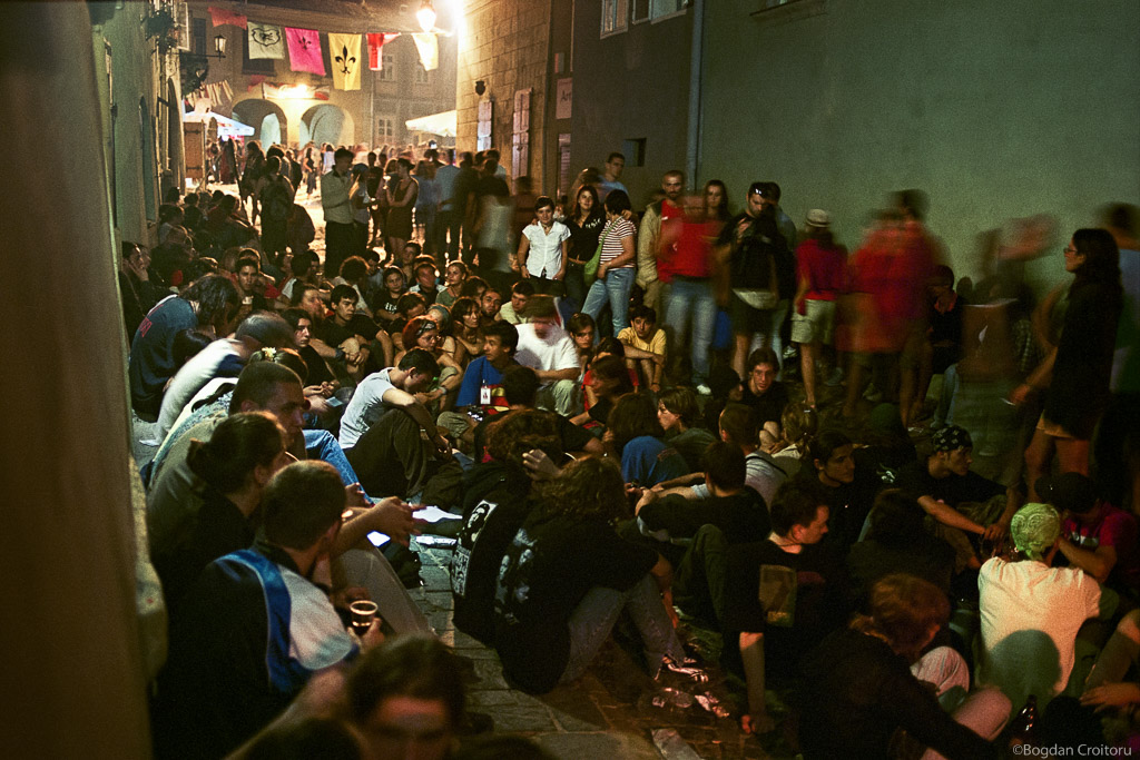 Young people gather on the streets of Sighisoara during the Medieval Festival. The place is considered to be the most beautiful and well preserved inhabited citadel in Europe. The chronicler Krauss lists a Saxon settlement in present-day Sighisoara by 1191.