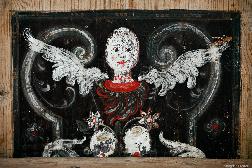 From the benches of the Viscri Fortified Church (Weisskirsch) an angel watches over the 25 Saxons who still come here to pray. In 1930, from the 787 inhabitants of Viscri, 562 were Saxons. Now there are about 400 Gypsies, 150 Romanians and less than 30 Saxons.