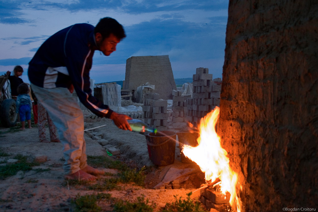 Manix lights the furnace using a can of diesel. The furnace of bricks will burn at smoldering fire up to one week.